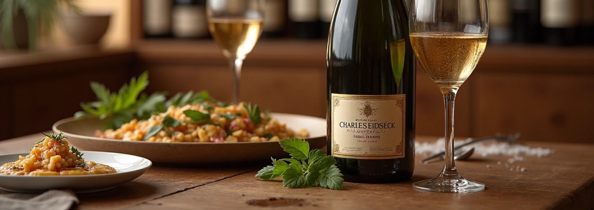 L’accord parfait entre le Brut Réserve et un risotto aux truffes est une expérience gustative inoubliable, mariant la complexité du champagne à la richesse du plat.