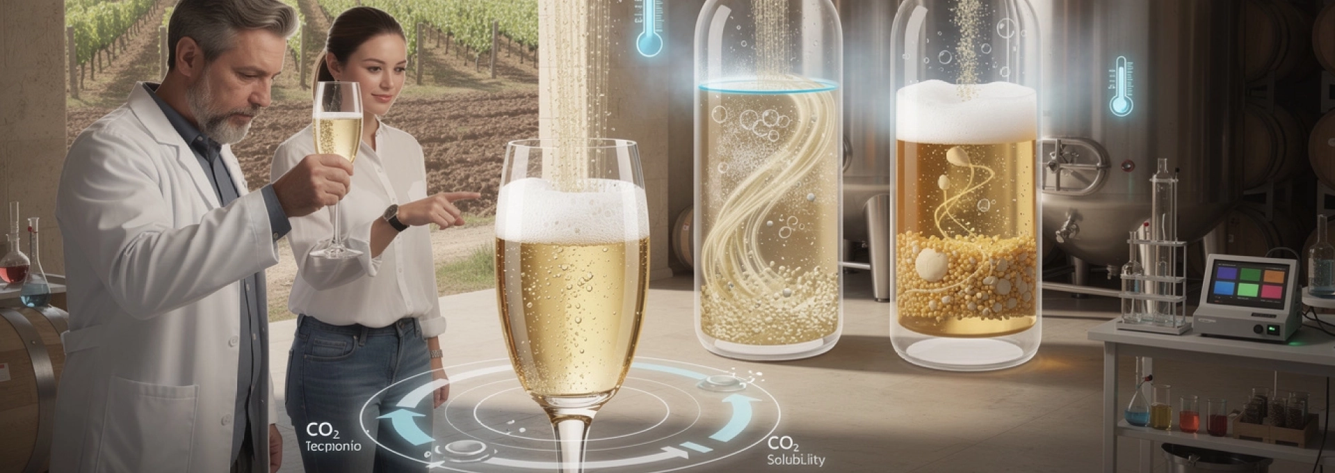 Comment expliquer cette différence alors que la molécule de CO₂ reste la même ? Tout se joue dans la manière dont le gaz s’intègre au réseau colloïdal du vin : protéines, polysaccharides, colloïdes tartriques et composés phénoliques agissent comme des supports de nucléation et de stabilisation des bulles. Le CO₂ endogène, produit progressivement au sein du liquide, dispose de plus de temps pour interagir avec ces composants et se structurer en une effervescence harmonieuse. La gazéification, elle, agit comme un simple « gonflage » mécanique, moins intimement lié à la matrice du vin.